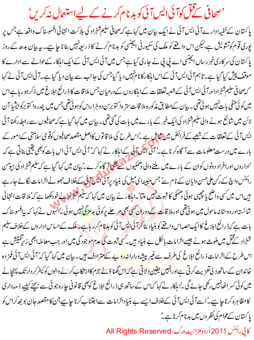 Sahafi K Qatal Ko Isi Ko Badnaam Krnay K Liay Istmaal Na Kiya Jaye