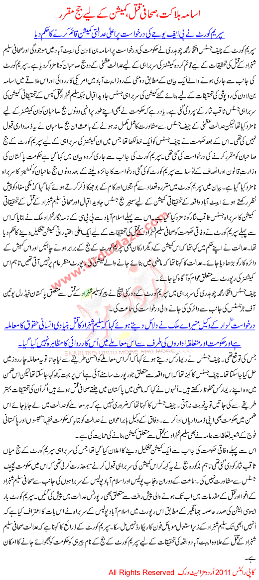 Osama Hilakat Sahafi Qatal Comission K Lye Gug Muqarar
