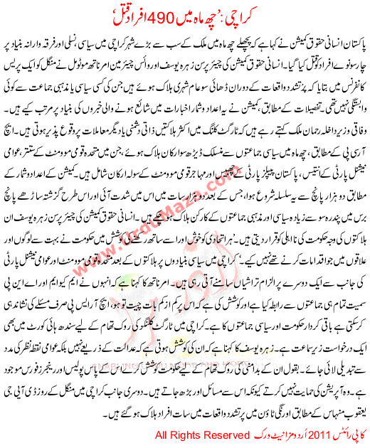 Karachi 6 Mah Ma 490 Afraad Qatal