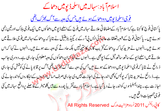 Islamabad Sehala K Aslha Depo Ma Dhmakay