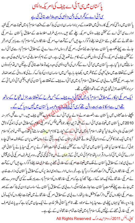 Pakistan Ma Cia Chief Ki Amrica Wapsi