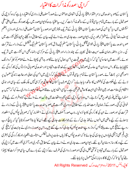 Sadar Ko Muzakrat Ka Ikhtyar Karachi
