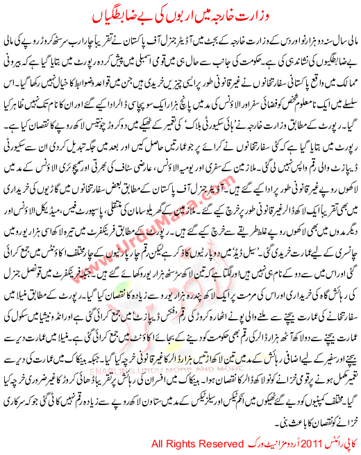 Wazarat E Kharja Ma Arbon Ki Bay Zabtgian