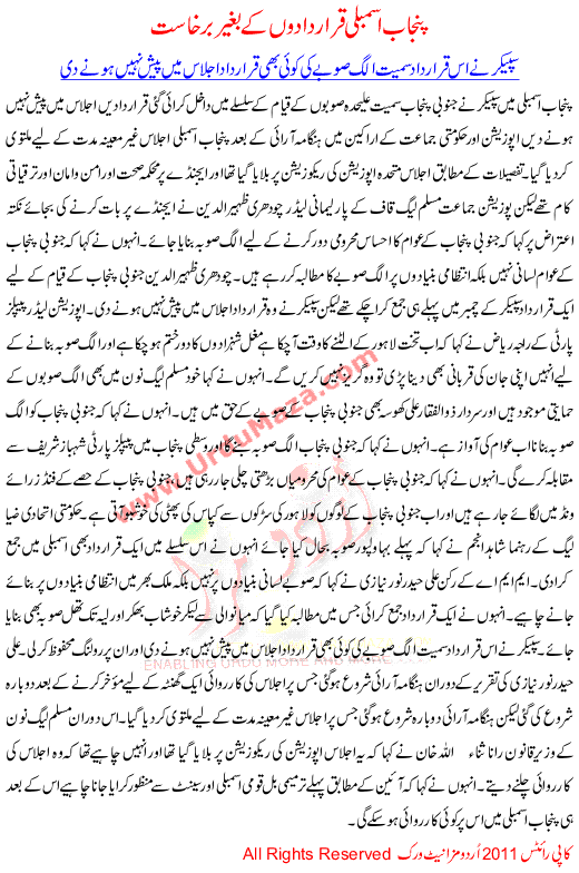 Punjab Assembly Qarardadon K Baghair Brkhast