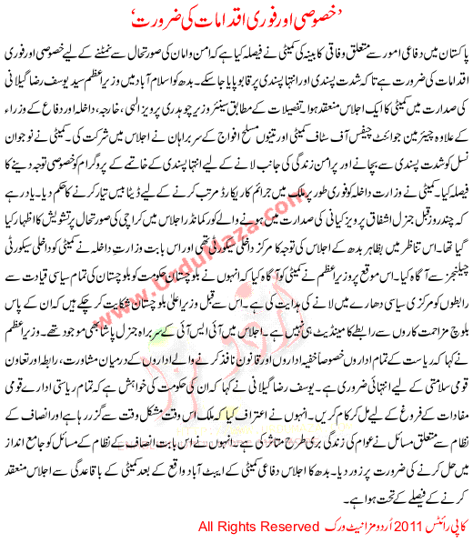 Khasoosi R Fori Iqdamat Ki Zaroorat