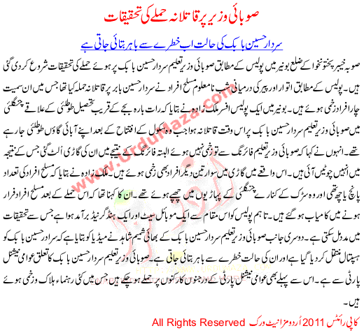 Sobaye Wazeer Per Qatlana Hamle Ki Tehqiqat