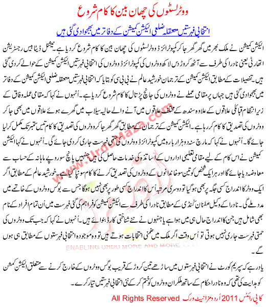 Voter Liston Ki Chaan Been Ka Kam Shuru