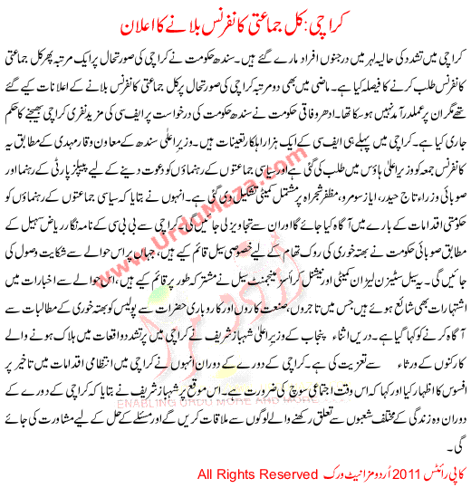 Kul Jamati Conferance Bulane Ka Elaan Karachi