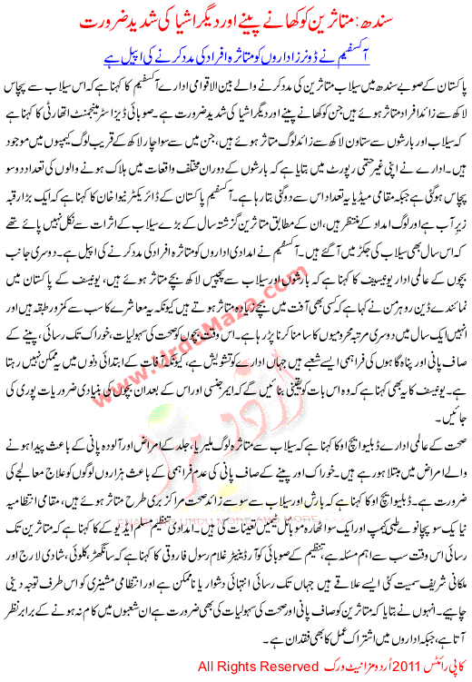 Sindh Mutasreen Ko Khanay Peenay R Deegr Ashia Ki Zaroorat