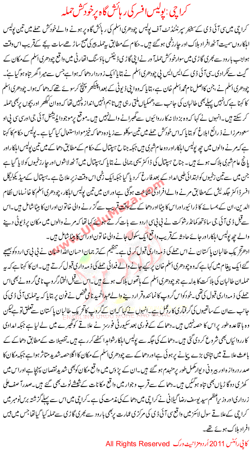 Karachi Police Afsar Ki Rihaishgah Pr Hamla