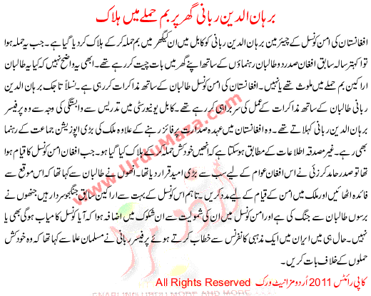 Barhaan Ud Din Rabbani Ghar Pr Hamlay Ma Halak