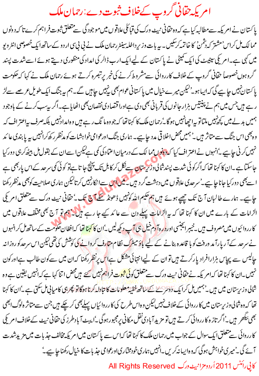 Amrica Haqani Group K Khilaaf Saboot Da Rehmam Malik