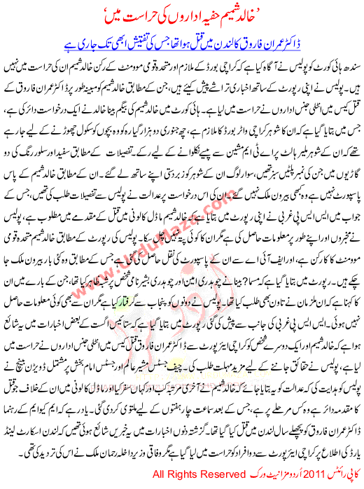 Khaldil Shameem Khufia Idaron Ki Hirasat Ma