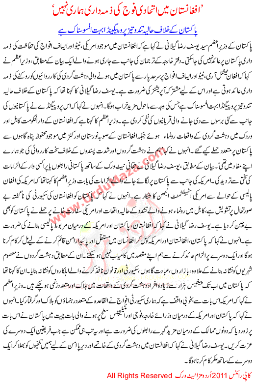 Afghanistan Ma Ithadi Fauj Ki Zimadari Hmari Nahi