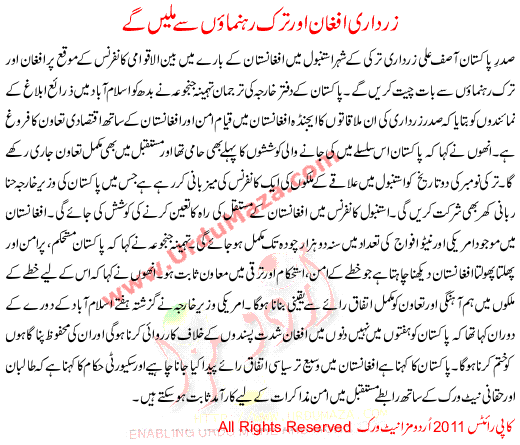 Zardari Afghan R Turk Rehnumaon Sa Milen Ga