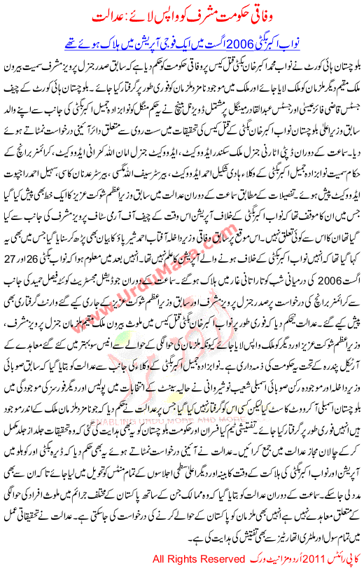 Wafaqi Hakoomat Musharaf Ko Wapis Laye