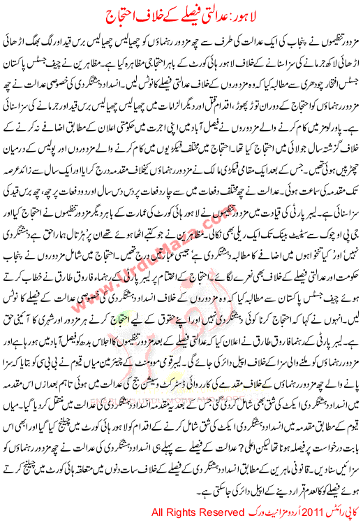 Lahore Adalti Feslay K Khilaaf Ihtjaj
