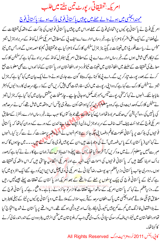 Amrica Tehqeeqati Report 3 Haftay Ma Talab