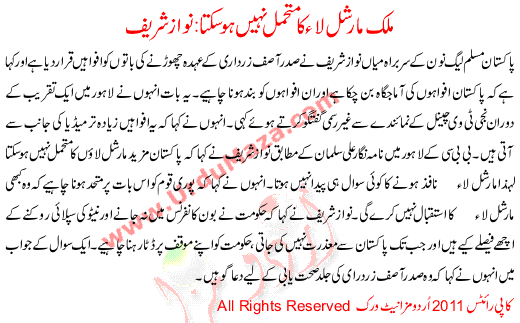 Mulk Marshal Law Ka Mutehmil Ni Ho Skta Nawaz Sharif