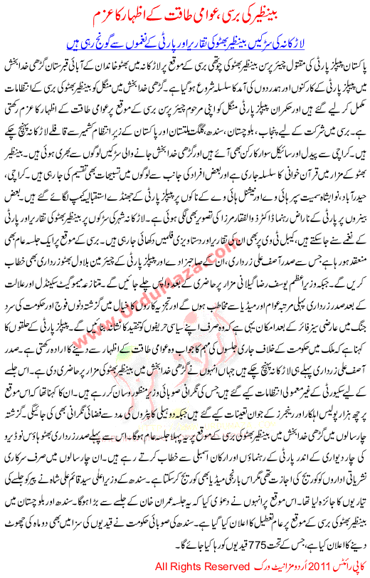 Benazir Ki Barsi Awami Taqat K Izhar Ka Azam