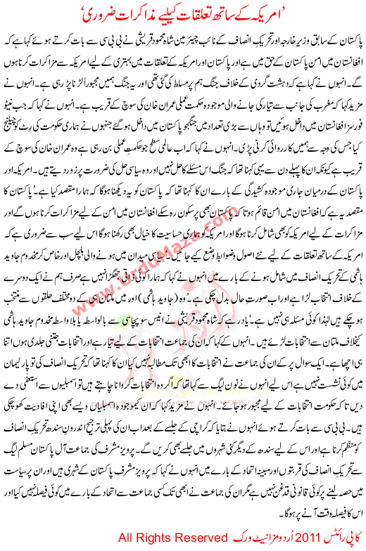 Amrica K Sath Talukat K Liay Muzakrat Zaroori