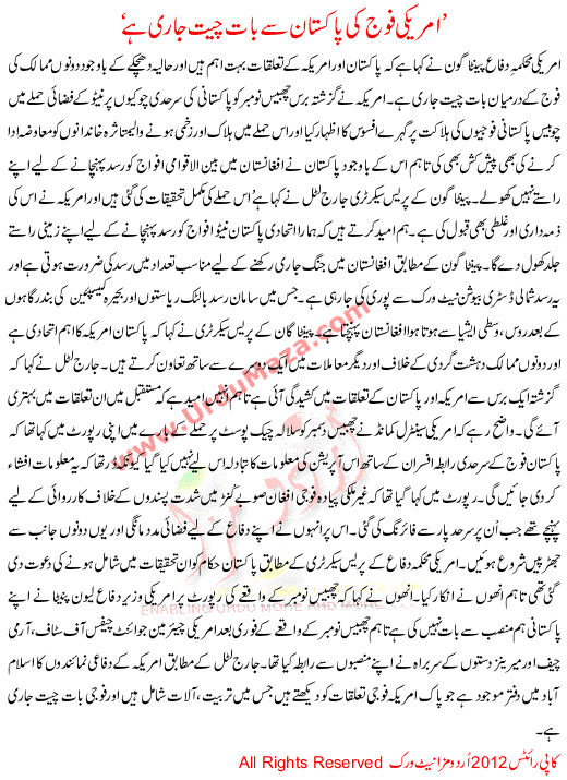 Amrici Fauj Ki Pakistan Sa Baat Cheet Jari