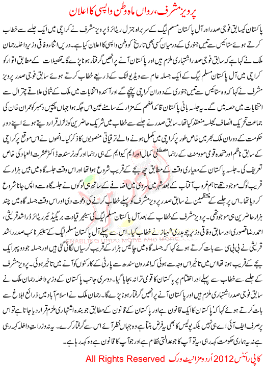 Pervez Musharaf Rawan Mah Watan Wapsi Ka Ilan