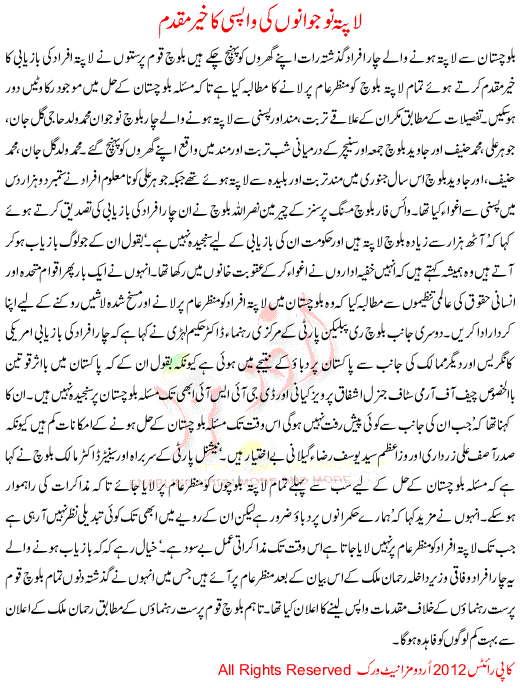 Voice For Baloch Missing Person Chairman Welcomes The Appearances Of Missing People In Court