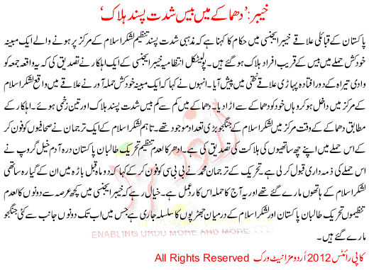 آسٹریلیا کی معروف اداکارہ انتقال کرگئیں => ملازم کیخلاف مس کنڈکٹ ثابت کرنا آجر کی ذمے داری ہے، سپریم کورٹ => سڈنی حملہ آور ساجد کا تعلق حیدرآباد تلنگانہ سے نکلا، بھارتی میڈیا خود حقائق سامنے لے آیا => لاہور: پنجاب پولیس نے تاوان کیلئے اغوا کی گئی لڑکی کو بازیاب کرالیا => جویریہ عباسی کی ہانیہ عامر کو نظر بد سے بچانے کیلیے انڈے سے نظر اتارنے کی ویڈیو وائرل => زخمی بلی نے ریسکیو اہلکاروں کی دوڑیں لگوا دیں؛ بے زبان کی جان کیسے بچی؟ ویڈیو دیکھیں => سندھ میں پبلک ٹرانسپورٹ کیلیے بسیں خریدنے کی مد میں 964.407 ملین روپے کی منظوری => سابق وزیر اعلی پنجاب میاں منظور وٹو انتقال کر گئے => نائن زیرو آپریشن کے بعد گرفتار سابق ایم پی اے کامران فاروقی بری => پاکستان دہشت گردی کی تمام اقسام کے خلاف جدوجہد جاری رکھے گا، دفتر خارجہ => ایشیز: آسٹریلیا کا پلیئنگ الیون کا اعلان، اہم کھلاڑیوں کی واپسی، خواجہ باہر => سابق وزیر اعلیٰ پنجاب 16 دسمبر 2014 سے متعلق پنجاب اسمبلی میں قرارداد جمع => کرن جوہر نے انوشکا اور ویرات کی شادی کے بارے میں 'خفیہ' تفصیلات بتادیں => نقاب کھینچنے کا واقعہ: راکھی ساونت کا بھارتی وزیراعلیٰ سے سرعام معافی مانگنے کا مطالبہ => پیپلز پارٹی کو لاہور اور پنجاب میں متحرک کرنے کا مشن تاحال ناکام => ’ بھارت میں مسلمان خاتون کےنقاب کی بےحرمتی سے نام نہاد حقوقِ انسانی کےعلمبرداروں کادہرامعیار بےنقاب‘ => سڈنی حملہ: عالمی سطح پر بھارتی دہشتگردی سے متعلق الزامات میں اضافہ => برازیل میں شدید آندھی سے اسٹیچو آف لبرٹی کا مجسمہ گر کر تباہ، ویڈیو وائرل => آئینی بنچ نے 28 ترک شہریوں کی ملک بدری روکنے کی استدعا مسترد کردی => آسٹریلوی وزیراعظم کی سڈنی حملے کے زخمی مسلمان ہیرو کیلئے اسپتال آمد، بہادری پر خراج تحسین پیش کیا => کوئٹہ میں گیس لیکیج کے باعث متعدد دھماکے، کئی افراد زخمی، دکانیں متاثر => اسلام آباد میں جائیدادوں کی قیمتوں کے تعین کا نوٹیفکیشن معطل => آسٹریلیا میں بونڈی بیچ پر حملے میں مائیکل وان اور ان کی فیملی نے کیسے جان بچائی؟ => کوئٹہ میں چوبیس کروڑ روپے مالیت کا اسمگل شدہ سامان ضبط => مزیدار کھانوں کے آسان آئیڈیاز ؛ توانائی اور صحت ایک ساتھ => سندھ کابینہ نے گندم ریلیز پالیسی میں نظرثانی کی منظوری دے دی، قیمت بھی کم ہوگئی => کوئٹہ میں آٹے کی قیمتوں میں ہوشربا اضافہ، شہریوں کی مشکلات میں اضافہ => جماعت اسلامی کی بلدیاتی انتخابات جماعتی بنیادوں پر کرانے کی درخواست پر فریقین کو نوٹس جاری => سندھ میں جیلوں کیلیے وائرلیس کمیونیکیشن سسٹم کے حصول کی منظوری => سوشل میڈیا پر ’تھینک یو جناح‘ کیوں ٹرینڈ کر رہا ہے؟ => وفاقی شرعی عدالت اسلام آباد ہائیکورٹ منتقل => سڈنی دہشت گردی: حملے سے پہلے نوید نے ماں کو کیوں فون کیا؟ حیران کن تفصیلات سامنے آگئیں => کراچی ایئرپورٹ پر مختلف ایئرلائنز کے طیارے کباڑ میں تبدیل ہوگئے => ڈگری تنازع کیس: جسٹس طارق جہانگیری کے اعتراضات مسترد => باجور میں پولیو ٹیم پر فائرنگ، پولیس اہلکار سمیت 2 افراد شہید، وزیراعظم کی شدید مذمت => وفاق نے طبی عملے کوہیلتھ الاونس کی ادائیگی کا طریقہ کار متعارف کرادیا => افغانستان میں چھوڑا گیا امریکی اسلحہ طالبان کی سب سے بڑی طاقت بن گیا => پی ایس ایل: نئی ٹیموں میں دلچسپی عروج پر پہنچ گئی، فنانشل ماڈل بھی تیار => صحت مند زندگی کیلیے ڈی ہائیڈریشن سے بچنے کے آسان طریقے => گلگت بلتستان؛ امیر اہل سنت قاضی نثار احمد پر قاتلانہ حملے میں اہم پیش رفت => ٹوئٹر نےپاکستان میں دفتر نہ کھولا تو اسے بند کردیں گے، پھر وی پی این سےبھی نہیں چلےگا، وزیر مملکت => اسلام آباد ہائیکورٹ کا درخواست گزار کو افغانستان ڈی پورٹ نہ کرنے کا حکم => ایف آئی اے این سی بی انٹرپول کی بڑی کارروائی، قتل کا اشتہاری ملزم سعودی عرب سے گرفتار => سڈنی میں مسلمانوں کے قبرستان کی بے حرمتی، سور کے کٹے ہوئے سر رکھ دیئے گئے => وزیراعلیٰ پنجاب نے 720 محنت کش خاندانوں کو انکے اپنے گھروں میں بسانے کا بندوبست کر دیا => اسلام آباد: پ