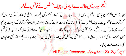 Shiekhupura Ma Taliba Sa Zyadti Cheif Justice Na Notice La Liya