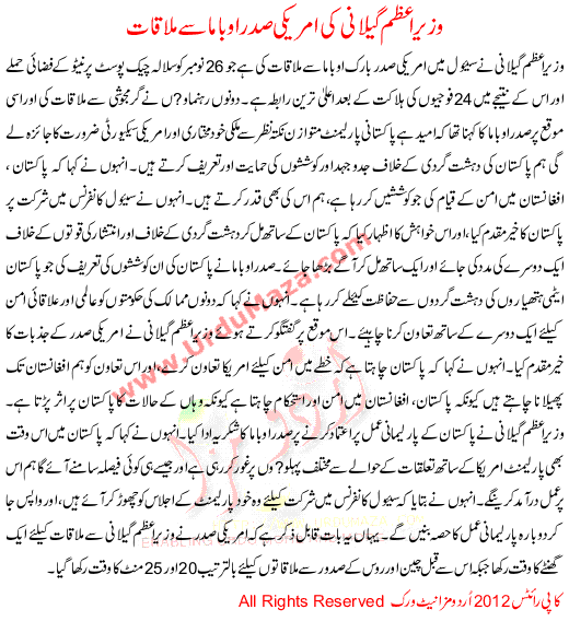 Wazir E Azam Gilani Ki Amrici Sadar Obama Sa Mulakaat