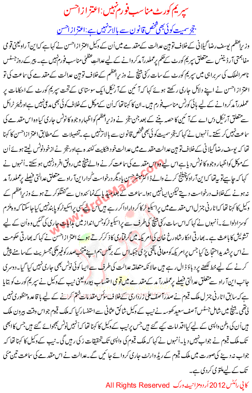 Supreme Court Munasib Forum Nai Itzaz Ahsan