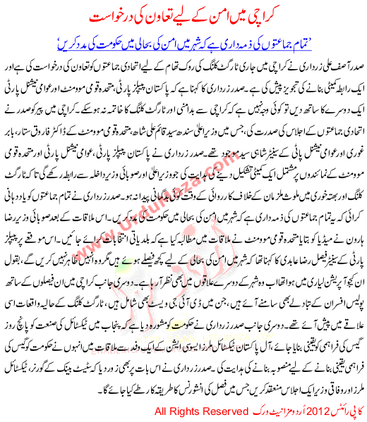 Karachi Ma Aman K Liay Aman Ki Darkhwast