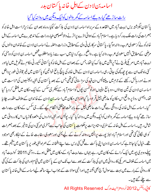 Osama Bin Ladin K Ahl E Khana Pakistan Badar