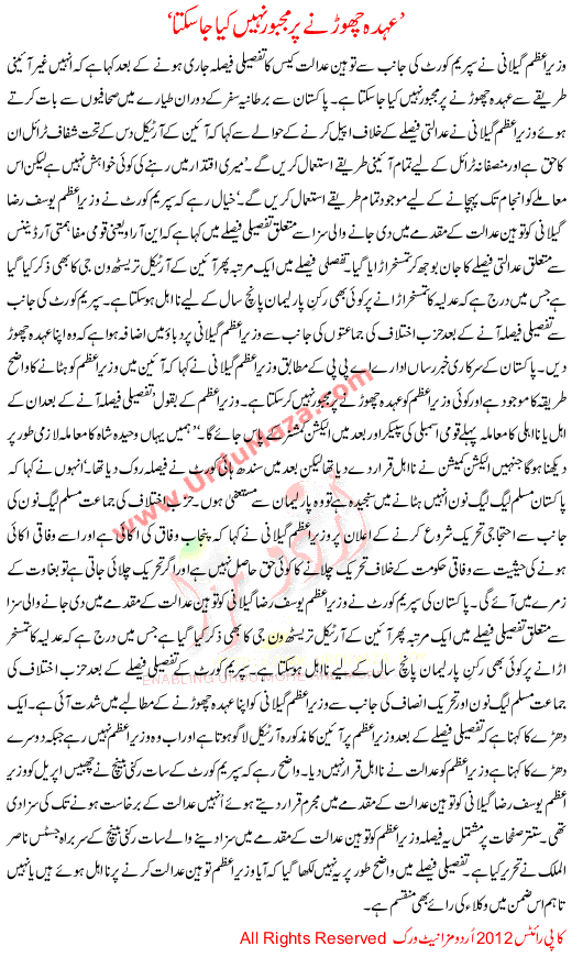 Ohda Chornay Pr Majboor Nai Kiya Ja Skta