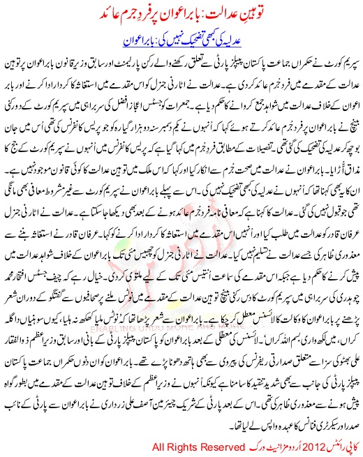 Toheen Adalat Babar Awan Pr Fard E Jurm Aide