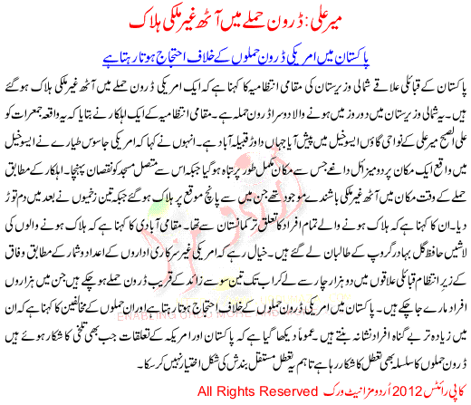 Mir Ali Drone Hamlay Ma 8 Ghair Mulki Halak