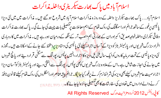 Islamabad Ma Pak Bharat Secartry Dakhla Muzakraat