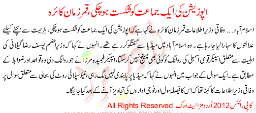 Opposition Ki Aik Jamaat Ko Shikast Ho Chuki Qamar Zaman Kaira