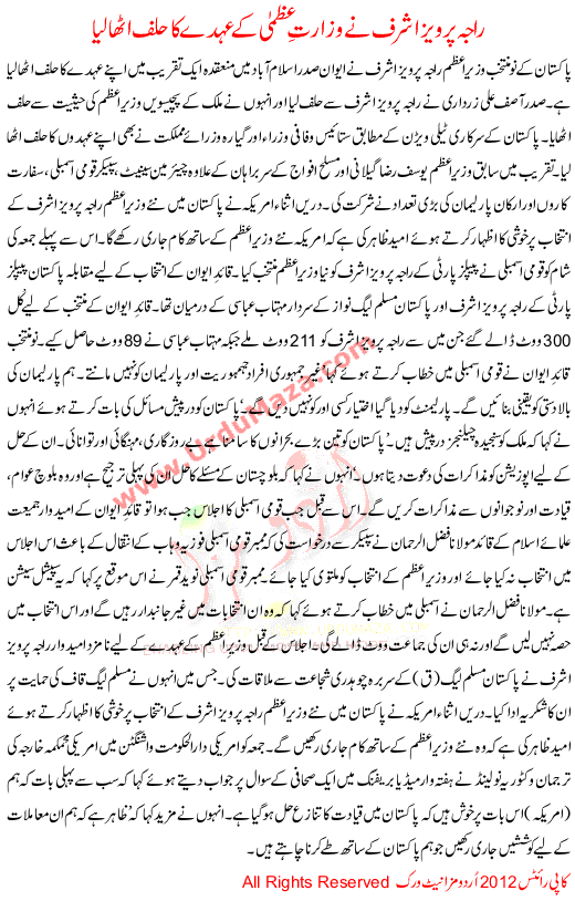 Raja Pervez Ashraf Naye Wazir E Azam Mukarar