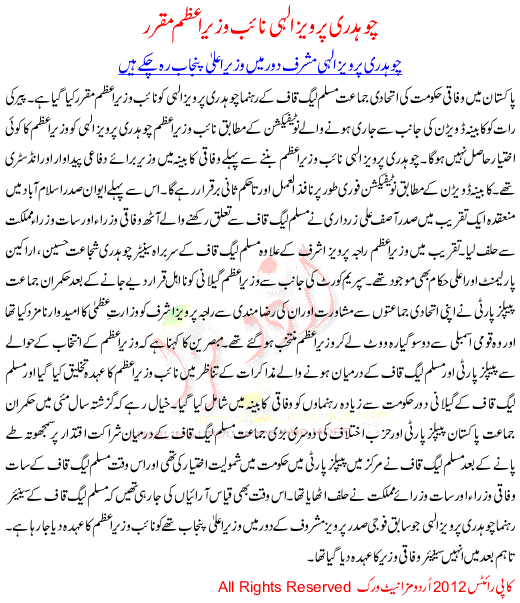 Ch Pervez Ilahi Naib Wazir E Azam Mukarar