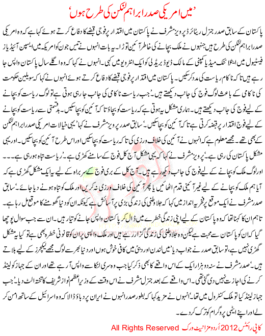 I Am Like American President Abraham Lincoln For Saving Constitution Says Parvez Musharraf