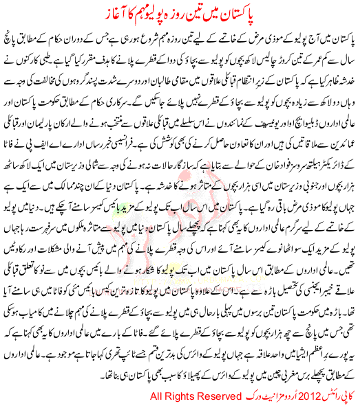 Pakistan Ma 3 Roza Polio Moham Ka Aghaaz