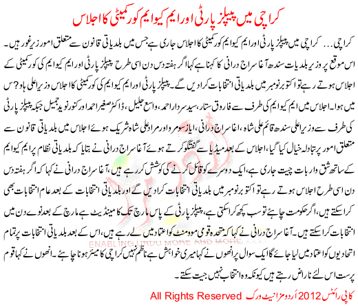 Karachi Ma Ppp R Mqm Ka Ijlaas