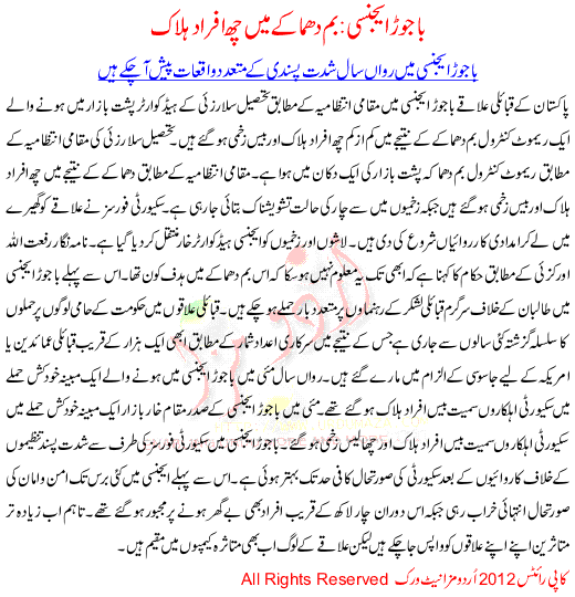 Bajor Agency Bum Dhmakay Ma 6 Afraad Halak