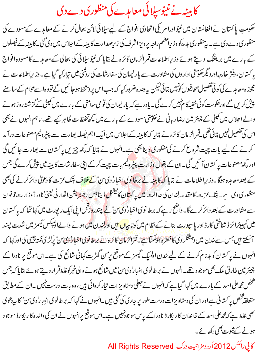 Kabeena Na Neto Supply K Muahiday Ki Manzoori Da Di