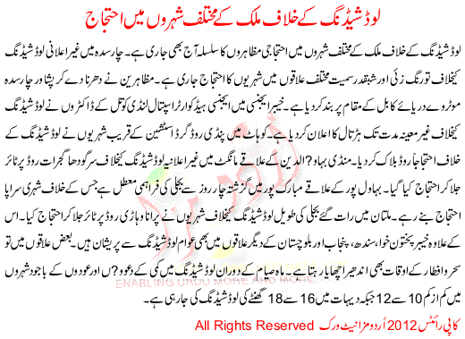 Loadsheding K Khilaaf Ehtjaji Muzahiray