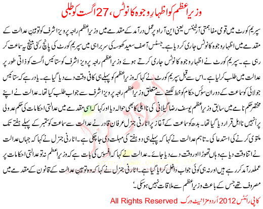 Wazir E Azam Ko Izhar E Wajooh Ka Notice