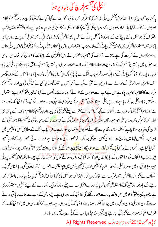 Bijli Ki Taqseem Kharch Ki Bunyaad Pr Ho