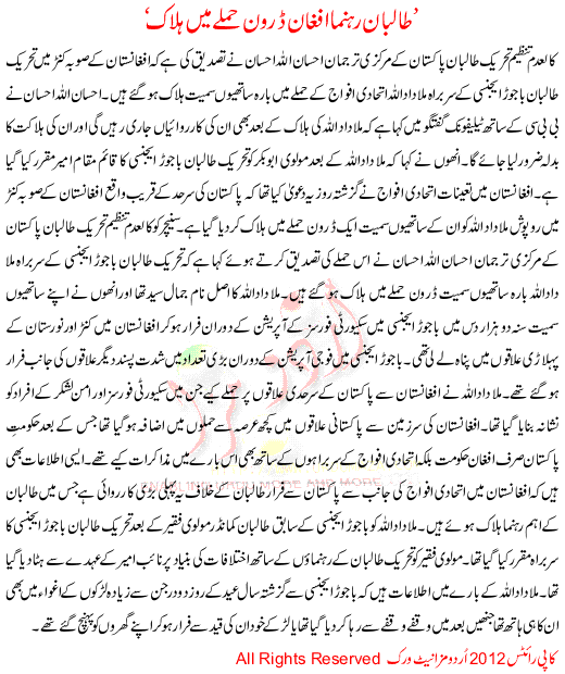 Taliban Rehnuma Afghaan Drone Hamlay Ma Halak